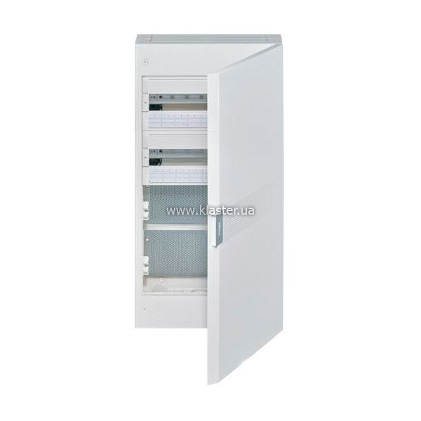 Щит Hager з/у белые дверцы 72M VEGA высокоемкое решение для организации сложных разветвленных систем электроснабжения в частных домах или коммерческих помещениях. Данная модель предназначена для скрытого монтажа в стеновые ниши и рассчитана на установку 72 стандартных модулей, которые рационально распределены в четыре ряда по 18 единиц. Глухая белая дверца щита полностью перекрывает видимость аппаратов защиты, превращая массивный технический узел в аккуратный элемент современного интерьера, сохраняющий чистоту линий фасада. Корпус изготовлен из высококачественного ударопрочного полимера, обладающего стойкостью к термическим нагрузкам.