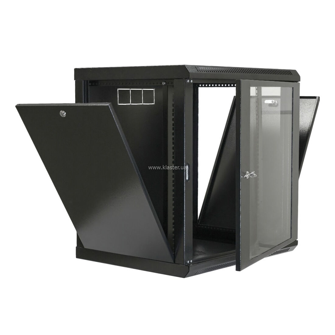 Это решение не только облегчает общую конструкцию, но и позволяет проводить визуальный мониторинг состояния индикаторов оборудования, не открывая шкаф и не нарушая температурный режим внутри. Перфорированные зоны в верхней и нижней частях корпуса обеспечивают естественную циркуляцию воздуха. Предусмотрены посадочные места для установки активного охлаждения (вентиляторных блоков). Съемные боковые панели обеспечивают доступ к оборудованию с трех сторон, что критически важно при прокладке сложных кабельных трасс. Возможен настенный и напольный тип установки.