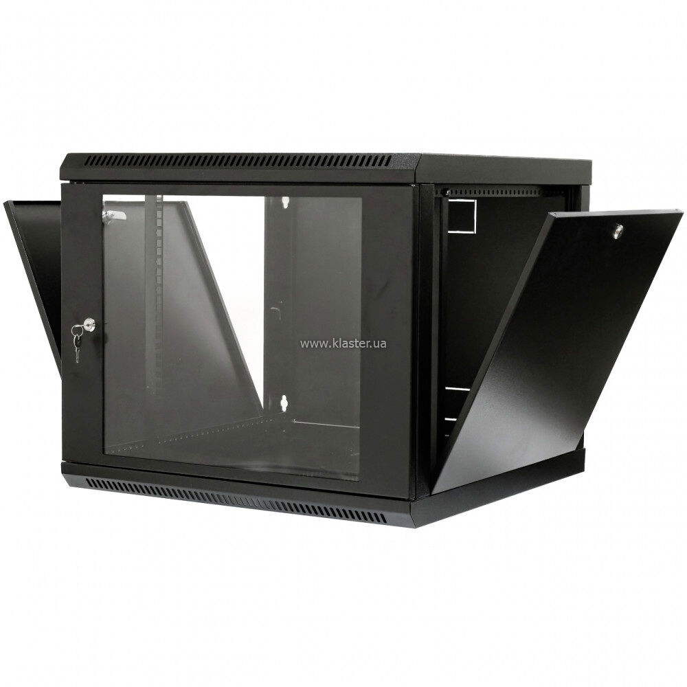 Черное порошковое покрытие не только защищает металл от коррозии, но и органично вписывается в современный серверный интерьер. Внутри шкафа установлены регулируемые по глубине 19-дюймовые направляющие (юниты). Это позволяет гибко настраивать внутреннее пространство под конкретные задачи. Данная серия отличается упрощенной, но прочной конструкцией, которая обеспечивает легкий доступ к оборудованию. Настенный монтаж позволяет экономить полезную площадь пола, при этом сохраняя жесткость каркаса. Шкаф оснащен замком на передней панели, что ограничивает несанкционированный доступ к критически важной инфраструктуре.