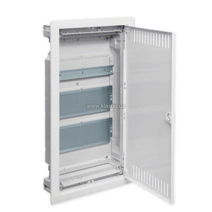 Щит Hager 3-рядний для ММ-обладнання в/в металевими дверцятами VOLTA призначений для прихованої організації слаботочних вузлів у житлових та комерційних інтер'єрах. Модель орієнтована розміщення активного мережного устаткування: роутерів, комутаторів, патч-панелей і систем зберігання даних. Сталеві дверцята забезпечені спеціальною перфорацією, яка виконує відразу дві функції: забезпечує ефективне відведення тепла від працюючих приладів та мінімізує екранування радіохвиль, зберігаючи стабільне покриття Wi-Fi. Конструктив виробу базується на пластиковому корпусі з високими діелектричними властивостями та металевою зовнішньою рамою з порошковим напиленням білого кольору.