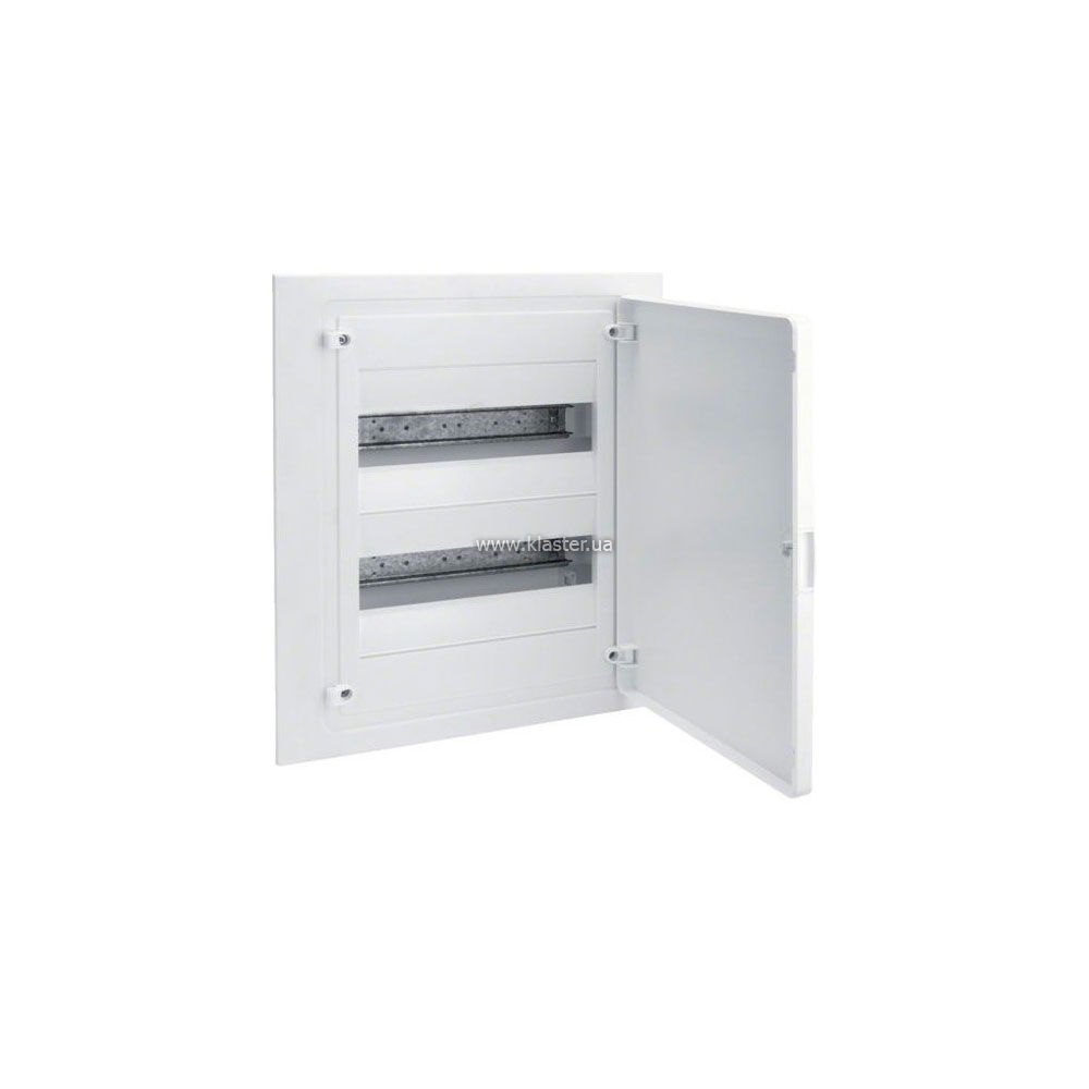 Щит Hager в/в з білими дверцятами 24 мод (2х12) GOLF призначений для прихованого монтажу та розрахований на встановлення 24 модулів, розташованих у два ряди по 12 штук. Модель виконана з високоякісного пластику, що самозагасає білого кольору, який зберігає свої естетичні властивості протягом усього терміну служби. Відмінною рисою серії Golf є запатентована система внутрішнього простору, що надає електромонтажнику більше місця для розведення кабелів як з обох боків, так і під DIN-рейками. Суцільні білі дверцята мають можливість перевішування на ліву або праву сторону і відкриваються на 180 градусів, що забезпечує повний та зручний доступ до автоматичних вимикачів.