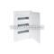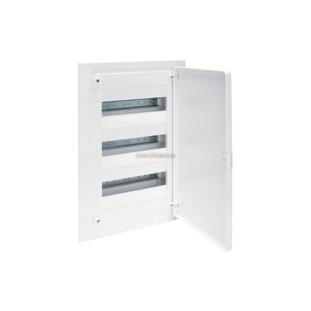 У комплект поставки входять безгвинтові клемні колодки QuickConnect для захисного (PE) та нульового (N) провідників, що забезпечують надійну фіксацію жил без використання інструменту. Білі суцільні дверцята оснащені петлями, що переставляються, для зміни сторони відкривання (ліво/право) і розкривається на 180 градусів. У корпусі передбачені підготовлені зони для введення кабелів та труб різних діаметрів. Габаритні розміри ніші для встановлення становлять 507х318х72 мм, що дозволяє інтегрувати щит у стандартні міжкімнатні перегородки. Короткий дизайн лицьової панелі з мінімальним виступом над поверхнею стіни робить пристрій практично непомітним в інтер'єрі.
