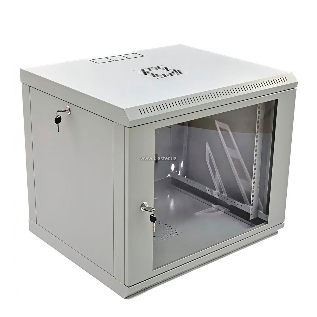 Передня панель оснащена ударостійким акриловим склом. Це дозволяє проводити візуальний моніторинг стану індикаторів обладнання (Link/Act на комутаторах, стан ДБЖ), не відкриваючи шафи. Перфоровані зони у верхній та нижній частинах корпусу забезпечують природну циркуляцію повітря. Також передбачені посадкові місця для встановлення стандартних вентиляторних модулів. Усередині встановлено дві пари вертикальних напрямних (юнітових рейок), положення яких можна регулювати по глибині. Захищені отвори для введення кабелів розташовані зверху та знизу, що дозволяє акуратно підвести магістральні лінії. Шафа пофарбована антистатичною порошковою фарбою (RAL 7035, світло-сірий), яка стійка до подряпин. У конструкції передбачені точки підключення контуру заземлення.
